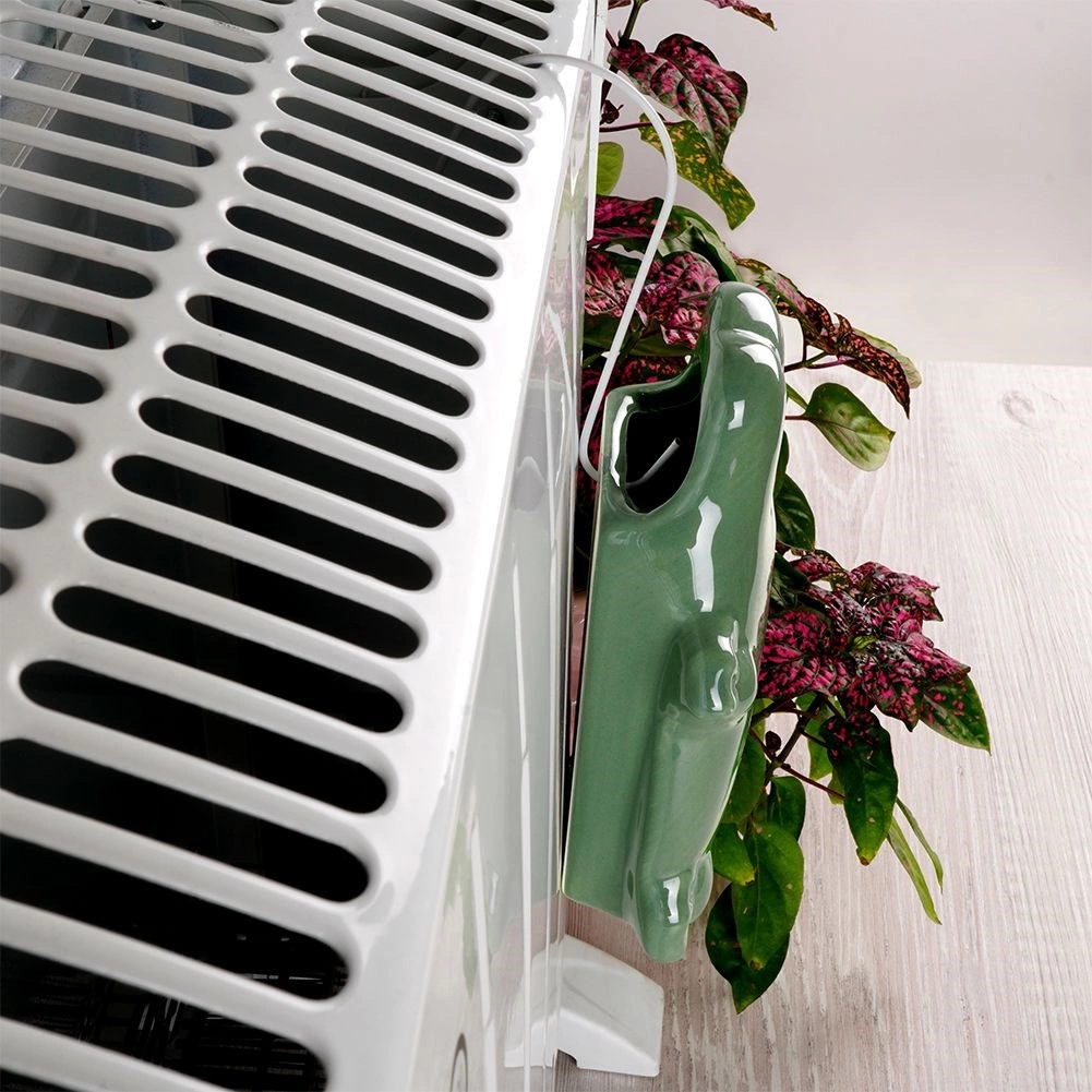 Riješite se suhog zraka u domu sa stilom. Keramički ovlaživač za radijator u obliku krokodila povećava udobnost disanja, ublažava suhe sluznice i poboljšava klimu u prostoriji. Zeleno glazirana keramika djeluje kao dekorativni dodatak koji se uklapa u svaki interijer, posebno u dječju sobu.