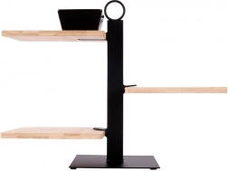 Crni metalni stup sa širokom bazom osigurava stabilnost, a gornji prsten olakšava prenošenje cijele etažere zajedno sa sadržajem.