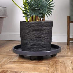 Izrađeno od kvalitetne, izdržljive plastike u tamno sivom tonu s crnim kotačićima za dug vijek trajanja. Postolje je univerzalno za upotrebu u zatvorenom i na otvorenom – olakšava čišćenje, promjene aranžmana i sezonska premještanja biljaka te pritom štiti površinu poda.