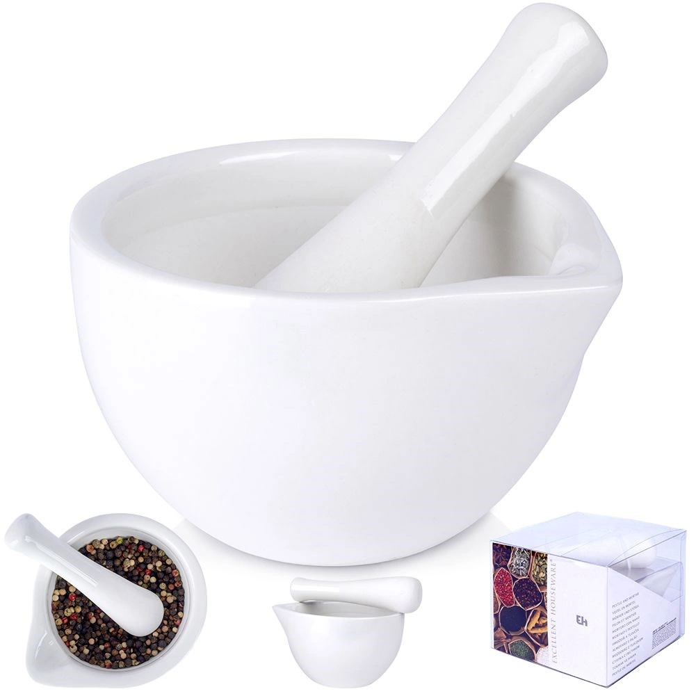 Teška, stabilna izrada od kvalitetne bijele keramike za učinkovito drobljenje bez klizanja.