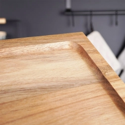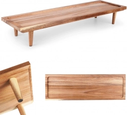 Ova univerzalna poslužavna daska s nogicama ističe se čistim dizajnom i funkcionalnošću. Zahvaljujući čvrstom bagremovu drvu otporna je na vlagu i deformacije, idealna za svakodnevnu upotrebu u kuhinji i pri gozbama. Povišeni rubovi drže namirnice na mjestu i olakšavaju prenošenje.