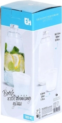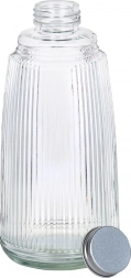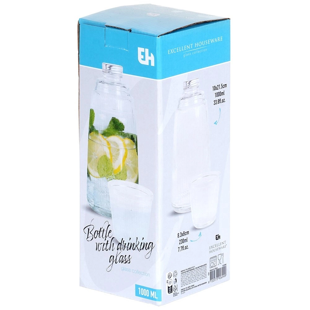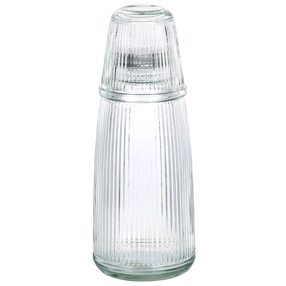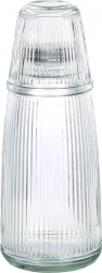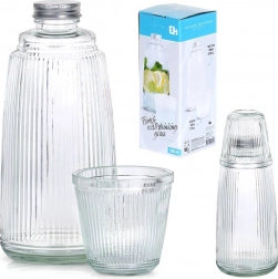 Ovaj svestrani stakleni set spaja funkcionalnost i estetiku: karafa zapremnine 1 l s navojnim zatvaračem i čaša 220 ml s vertikalnim rebrima. Prozirno, čvrsto staklo lijepo ističe boje napitaka i istaknut će se na svakom stolu, u domu i u vrtu.