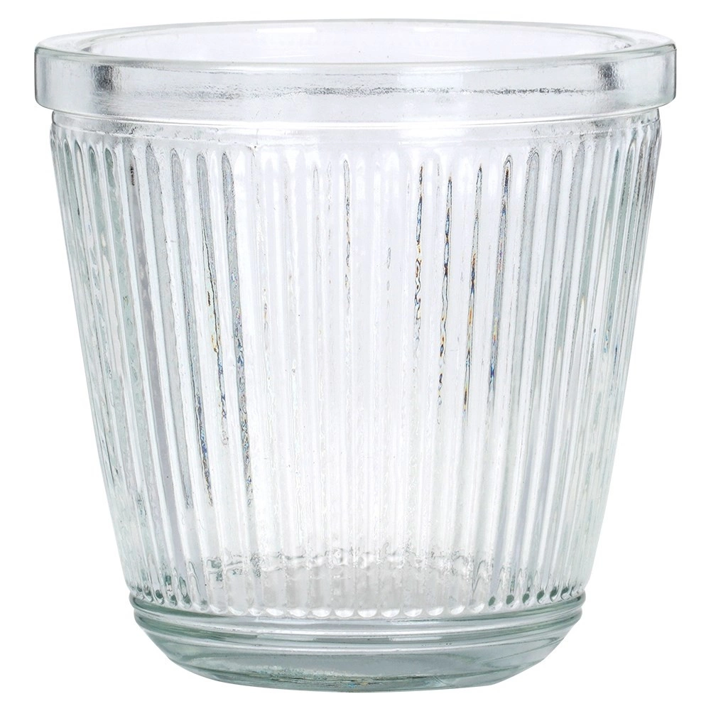 Debelo, prozirno staklo s vertikalnim rebrima osigurava siguran hvat, elegantan izgled i lako čišćenje u perilici posuđa.