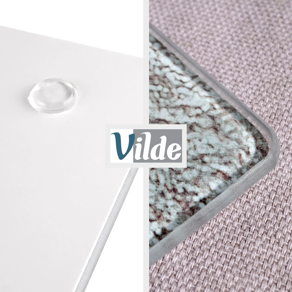 Praktičan set dviju staklenih ploča koje služe kao površine za rezanje i poklopci za ploču za kuhanje, čime stvaraju dodatni radni prostor i u maloj kuhinji. Od kaljenog stakla s elegantnim kamenim dekorom, s protukliznim nožicama, otpornošću na temperature do 150 °C i lakim održavanjem.