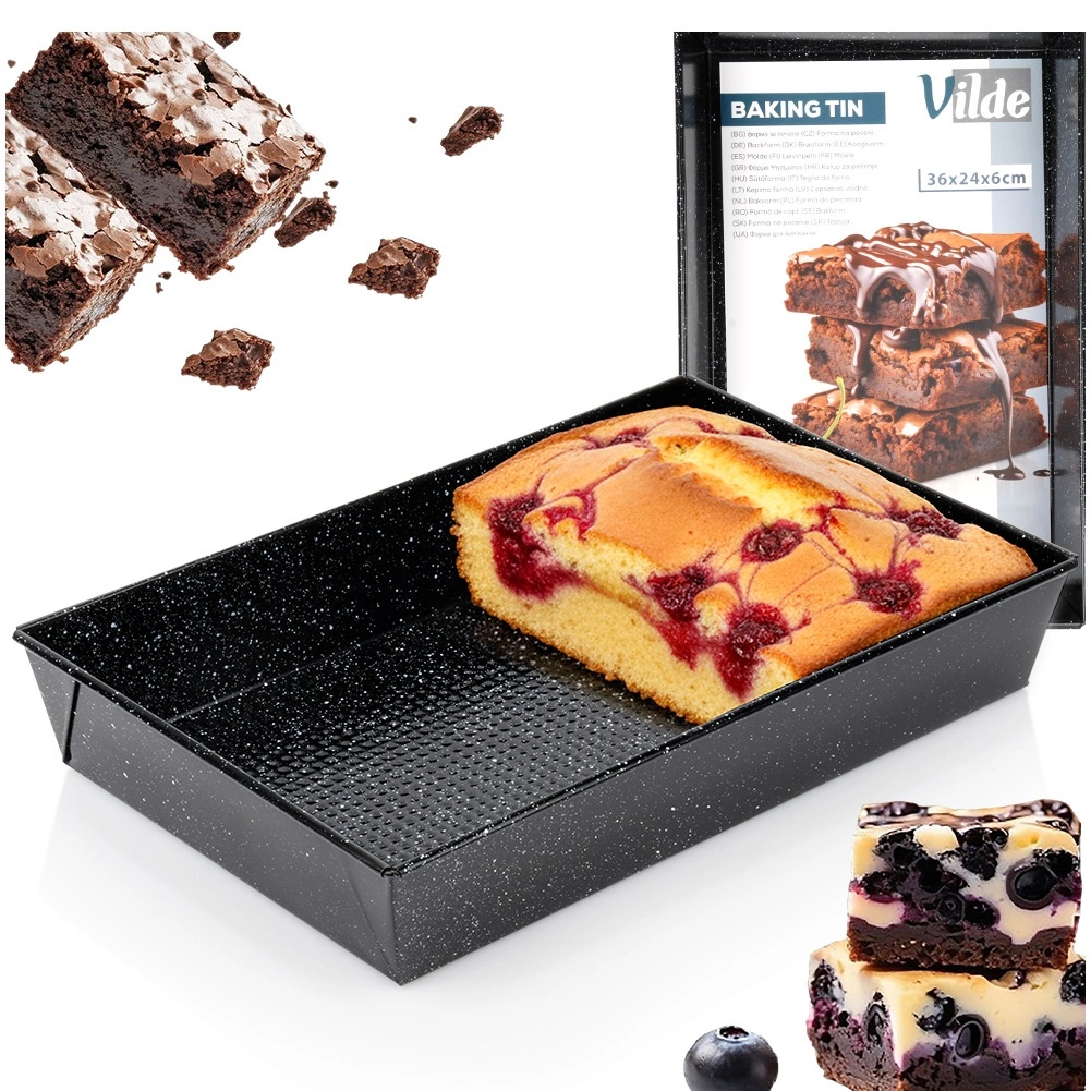Dimenzija 36 × 24 × 6 cm savršena je za obiteljske deserte, slane složence te pečenje mesa i povrća. Kalup je siguran za kontakt s hranom i prikladan za plinsku i električnu pećnicu do 230 °C. Originalni proizvod marke VILDE, izrađen prema europskim standardima.