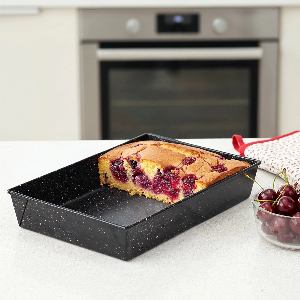 Ovaj izdržljivi granitni kalup nezamjenjiv je pomoćnik u svakoj kuhinji. Ugljični čelik izvrsno provodi toplinu, pa se tijesto i zapečena jela peku ujednačeno sa svih strana. Neprianjajuća površina minimalizira rizik od prianjanja i olakšava posluživanje i čišćenje.