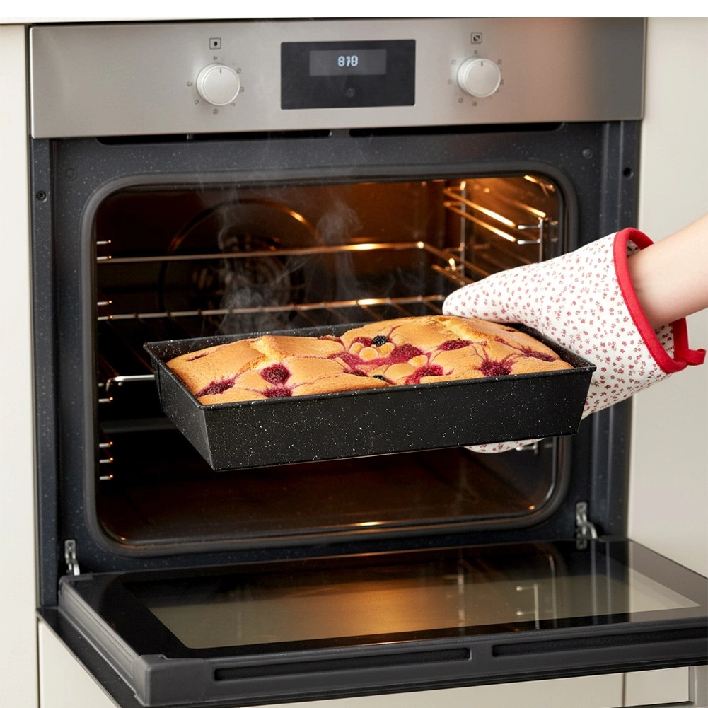 Izdržljiva granitna površina sprječava lijepljenje i omogućuje lako vađenje kolača i zapečenih jela, a ujedno olakšava čišćenje.