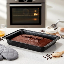 Zahvaljujući ravnomjernoj raspodjeli topline pečeno meso bit će sočno, a korica hrskava. Kalup je univerzalan: prikladan za pečenje mesa, povrća, zapečenih jela, pita i domaće pizze s višim rubom. Nakon pečenja lako se čisti – pogodan je za perilicu posuđa.