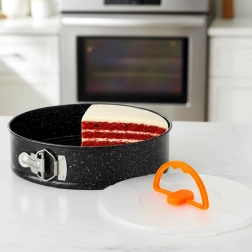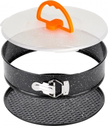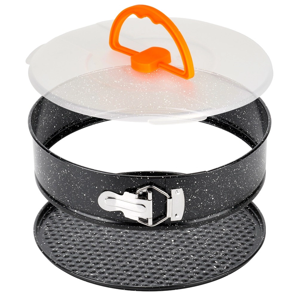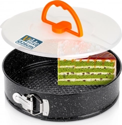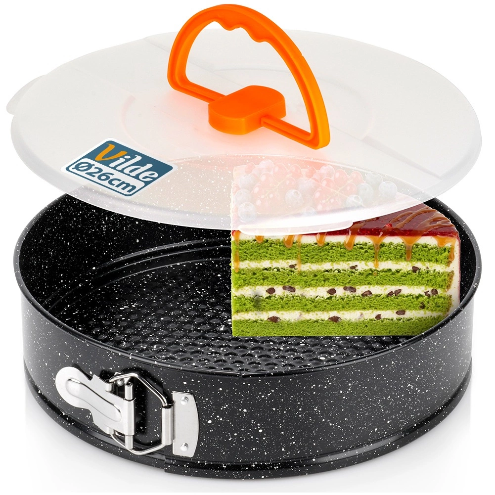 Zahvaljujući odvojivom rubu i izvadivom dnu gotov desert izvadit ćete bez oštećenja oblika. U paketu je prozirni poklopac s čvrstom ručkom za sigurno čuvanje u hladnjaku i praktičan transport – kolač ostaje zaštićen i ne isušuje se.
