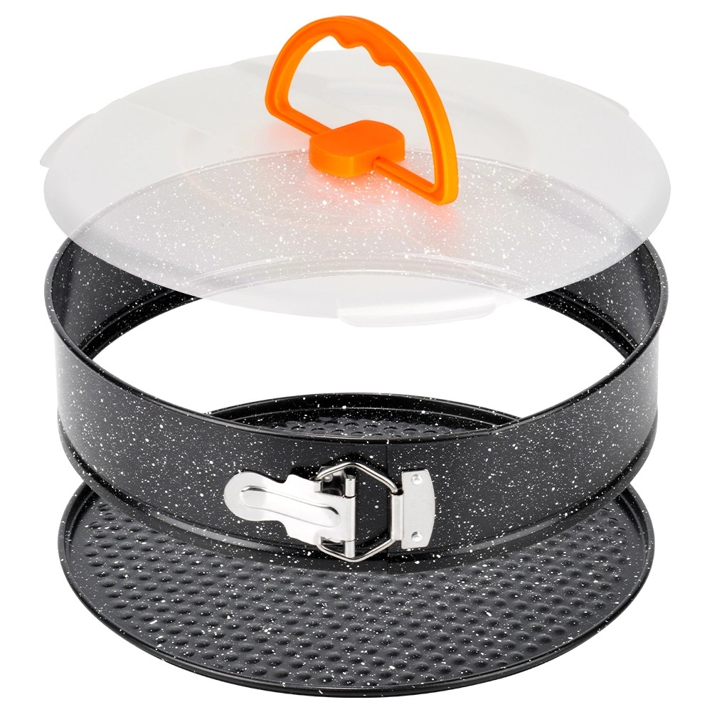 Zahvaljujući odvojivom obruču i uklonjivom dnu izvadit ćete gotov desert bez narušavanja oblika. Prozirni poklopac s udobnom ručkom štiti od isušivanja te olakšava prijenos i čuvanje u hladnjaku.