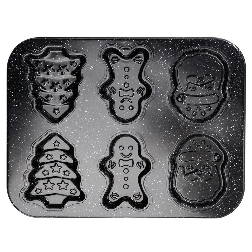 Ispecite odjednom šest detaljnih keksića ili mini biskvita u oblicima Djeda Mraza, borića i figure medenjaka – idealno za božićno pečenje i poklone.