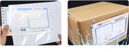 Jaka samoljepljiva stražnja strana (hot-melt) osigurava čvrsto prianjanje na kartonske kutije, folijske omote i stretch. Prozirna prednja strana omogućuje trenutačno skeniranje kodova bez vađenja dokumenta, što ubrzava sortiranje i dostavu.