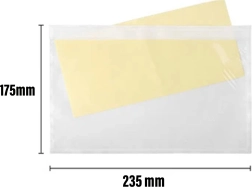 Samoljepljive kurirske omotnice C5 od prozirne folije pouzdano štite transportne dokumente od vlage, nečistoća i habanja. Jako hot-melt ljepilo sigurno prianja na kartone, folijske omote i omotnice, a prozirni prozorčić omogućuje lako čitanje i skeniranje barkodova.