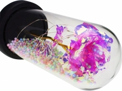 Iridescentni ružičasti cvijet sa zlatnom stabljikom omotan je nježnim LED lampicama koje stvaraju čaroban efekt i bez dodatnih dekoracija.