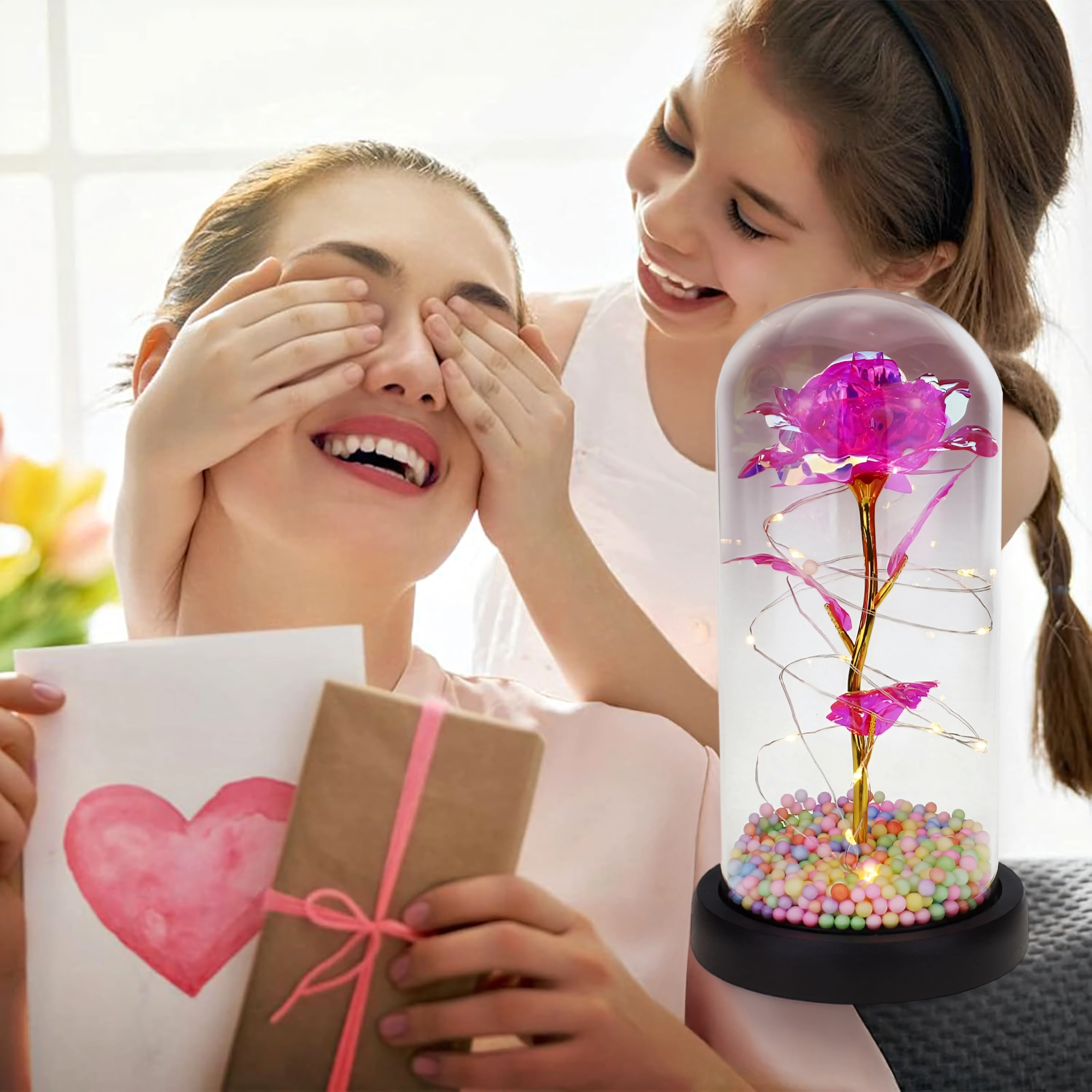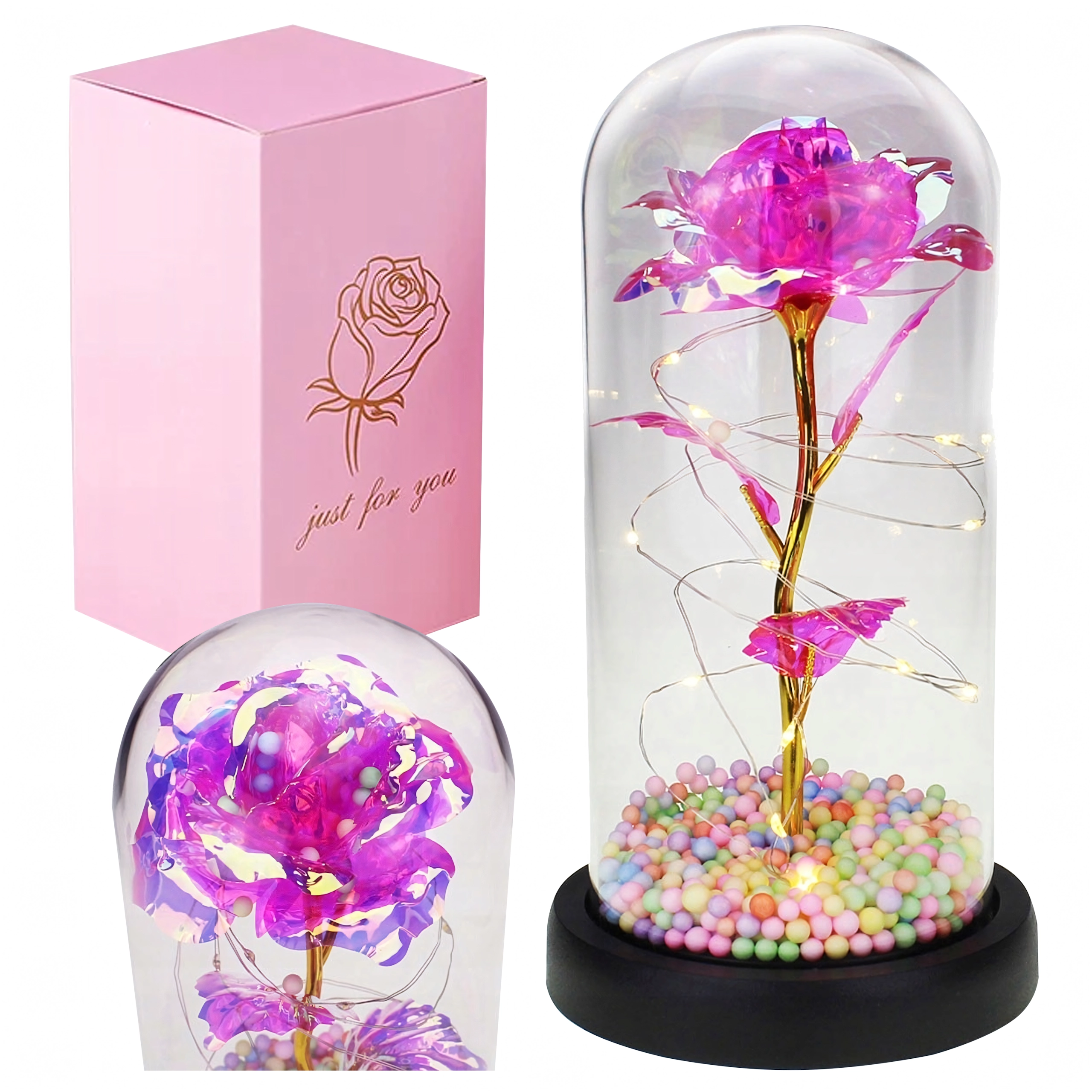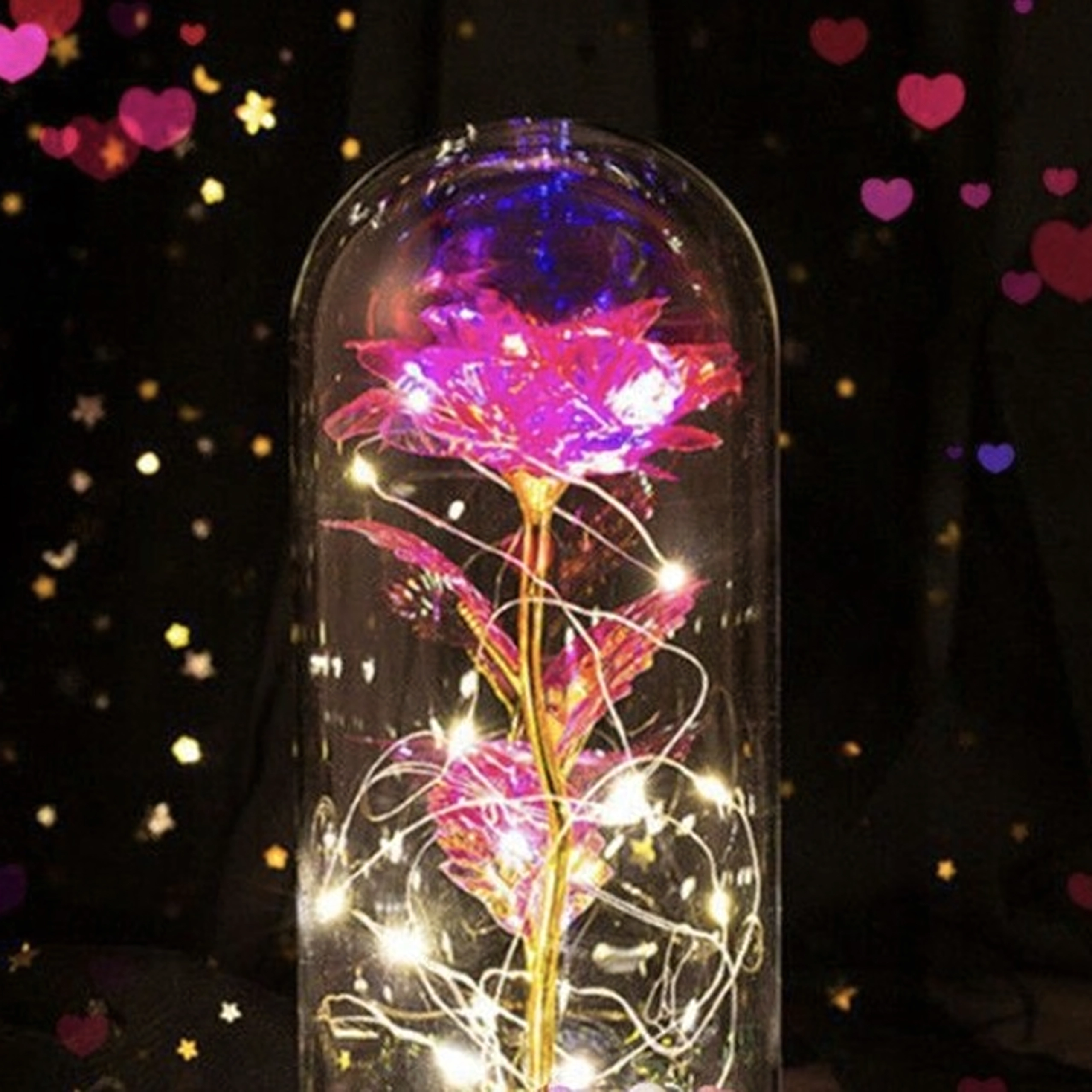 Elegantna LED ruža pod staklenim zvonom unijet će u svaki interijer toplo, blistavo svjetlo. Kombinira moderno LED osvjetljenje s bezvremenskim simbolom ljubavi – ružom – stvarajući dojmljiv kućni detalj i nezaboravan poklon. Zvon štiti cvijet od prašine i naglašava njegovu nježnu svjetlost.