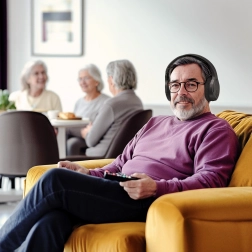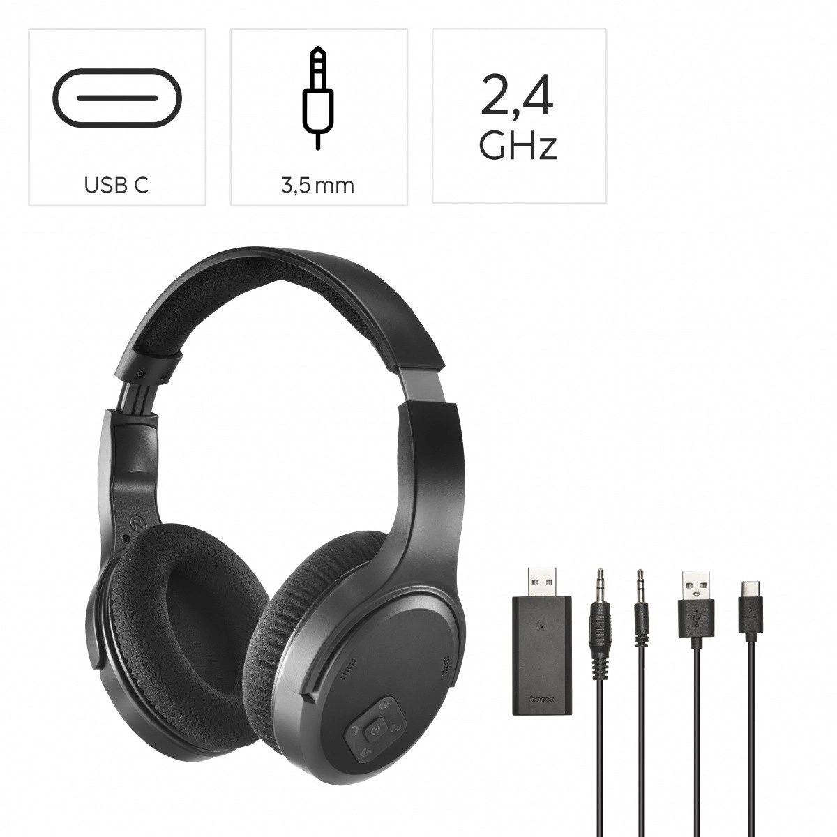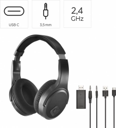 Bežične slušalice za televizor donose čist i sinkroniziran zvuk zahvaljujući 2,4 GHz prijenosu bez kašnjenja. Dovoljno je priključiti USB-A ključ u TV i slušalice se automatski povezuju. Zatvorena over-ear konstrukcija s pasivnim poništavanjem buke izolira okolne zvukove i osigurava neometano slušanje.