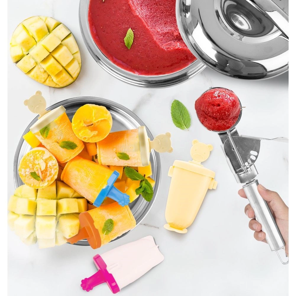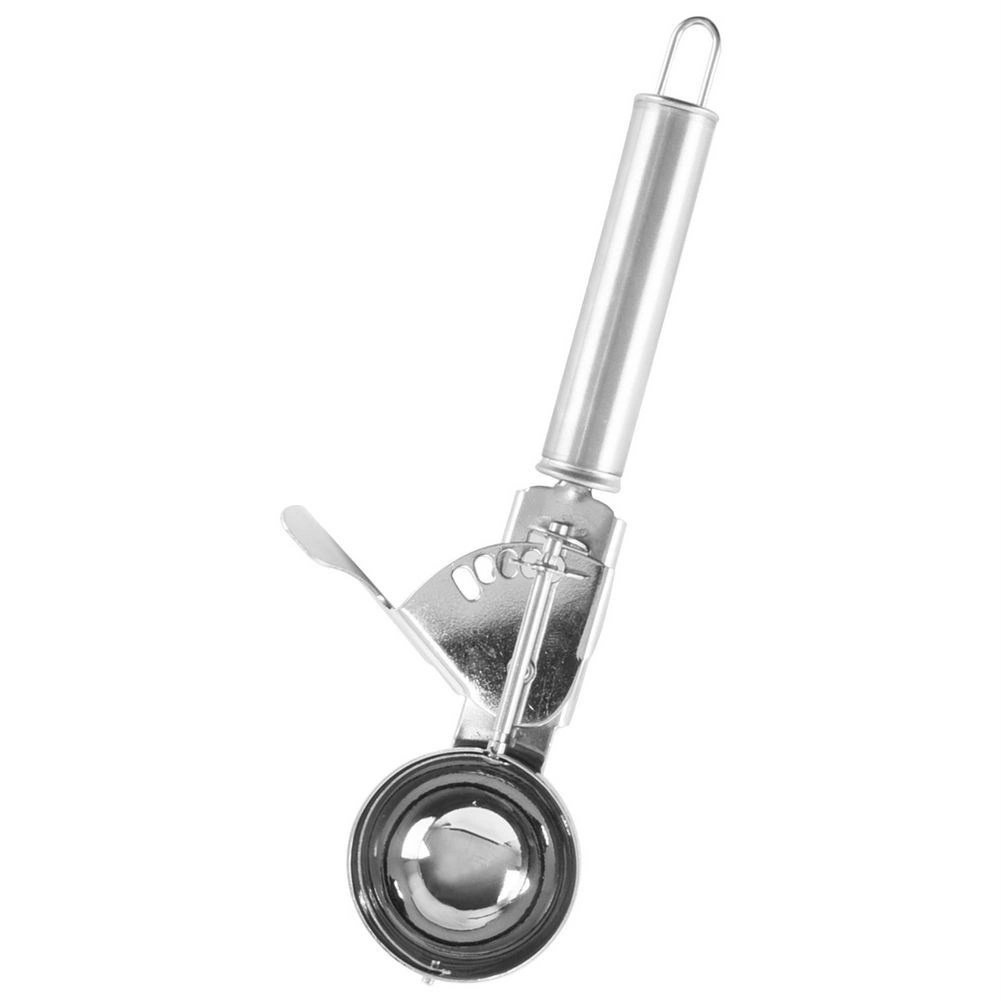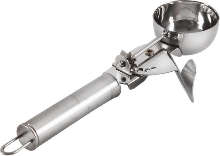 Žlica je univerzalna – osim sladoleda lako ćete napraviti jednolike porcije pirea od krumpira ili riže. Zahvaljujući otvoru za vješanje uvijek je možete imati pri ruci na kuhinjskoj ogradi ili pohranjenu u ladici. Sigurna izrada je zdravstveno ispravna i neutralna prema namirnicama.
