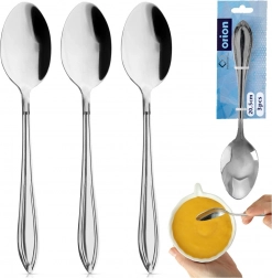 Set od 3 velike žlice za jelo CONIC praktičan je dodatak svakom kućanstvu i ugostiteljstvu. Izrađene su od visokokvalitetnog nehrđajućeg čelika u elegantnoj srebrnoj izvedbi, sigurnoj za kontakt s hranom i jednostavnoj za održavanje.