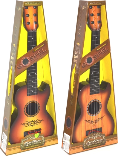 Otkrijte radost glazbe s ovom dječjom plastičnom gitarom duljine 59 cm, koja vjerno oponaša pravi instrument. Ima četiri žice, a u pakiranju je i trzalica – idealno za prve glazbene korake djece od 3 godine.