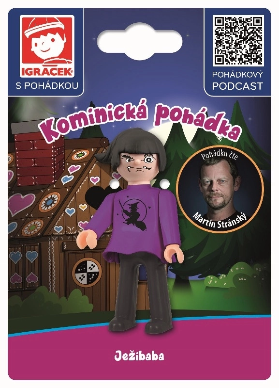 Set IGRÁČEK donosi djeci ne samo dvije omiljene figurice – vješticu i dimnjačara Franju – već i originalnu dimnjačarsku bajku koju su pročitali glumci Martin Stránský i Lenka Schreiberová. Dovoljno je skenirati QR kod na prodajnoj kartici i upustiti se u avanturu iz kućice od medenjaka.