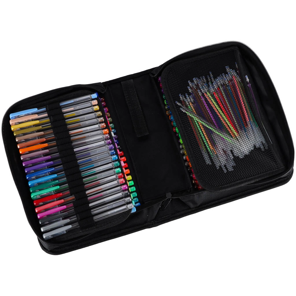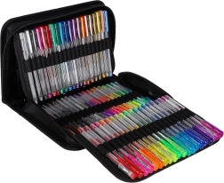 Otkrijte univerzalan set za školu, ured i slobodno vrijeme: 100 gel olovaka u bogatoj paleti boja i efekata, uz 100 zamjenskih uložaka. Pregledan sklopivi etui s patentnim zatvaračem drži svaku olovku na svom mjestu, pa su sve boje uvijek pri ruci i sigurno pohranjene.