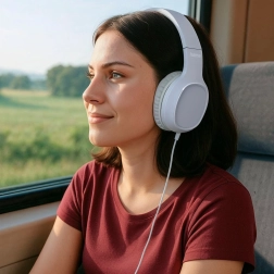 Meki jastučići za uši i podstavljen, podesiv obruč za glavu osiguravaju udobno nošenje i pri dugom slušanju kod kuće i na putu.