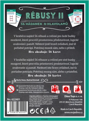 Uvježbajte mozak na zabavan način uz kartašku igru Dino Zagonetke II. Pakiranje nudi 56 karata prepunih zagonetki i mozgalica koje će provjeriti logičko razmišljanje, pamćenje, opažanje i prostornu maštu. Zahvaljujući kompaktnim dimenzijama riječ je o odličnoj putnoj igri za djecu i odrasle.