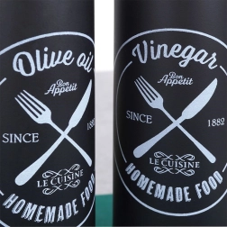 Uz ovaj set dviju elegantnih boca ulje i ocat uvijek ćete imati pri ruci i pod kontrolom. Visokokvalitetno staklo u kombinaciji s mat crnom oblogom i nehrđajućim izljevom jamči čistu, udobnu i higijensku uporabu. Jasne oznake pomažu brzo razlikovati sadržaj.