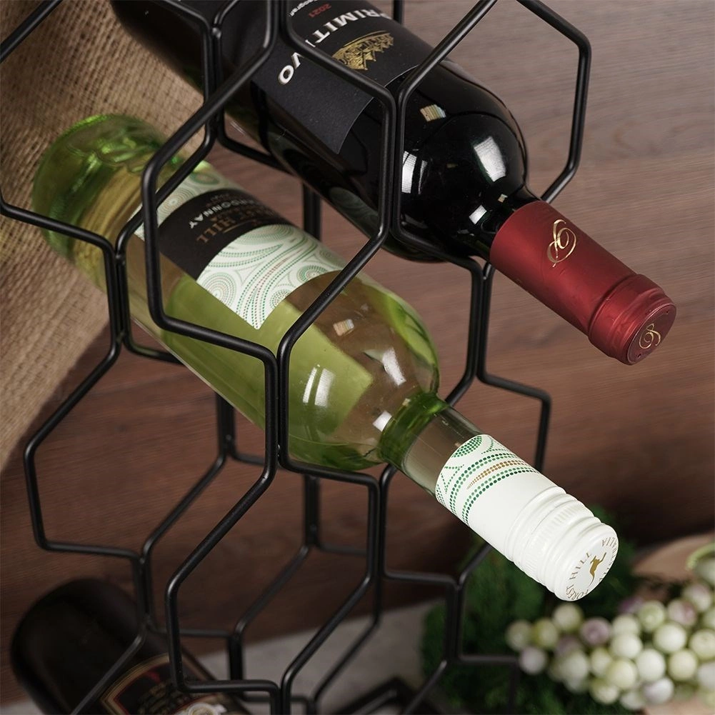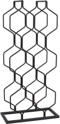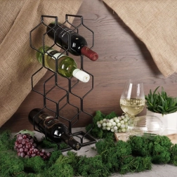 Ovaj moderan stalak za vino s heksagonalnom konstrukcijom prima do 8 boca i drži ih vodoravno kako bi čepovi ostali prirodno vlažni. Minimalistički dizajn u crnoj boji lako se uklapa u različite stilove interijera – od moderne kuhinje do kućnog bara.