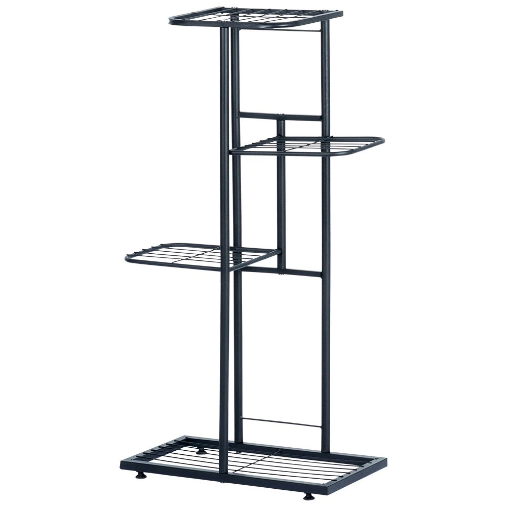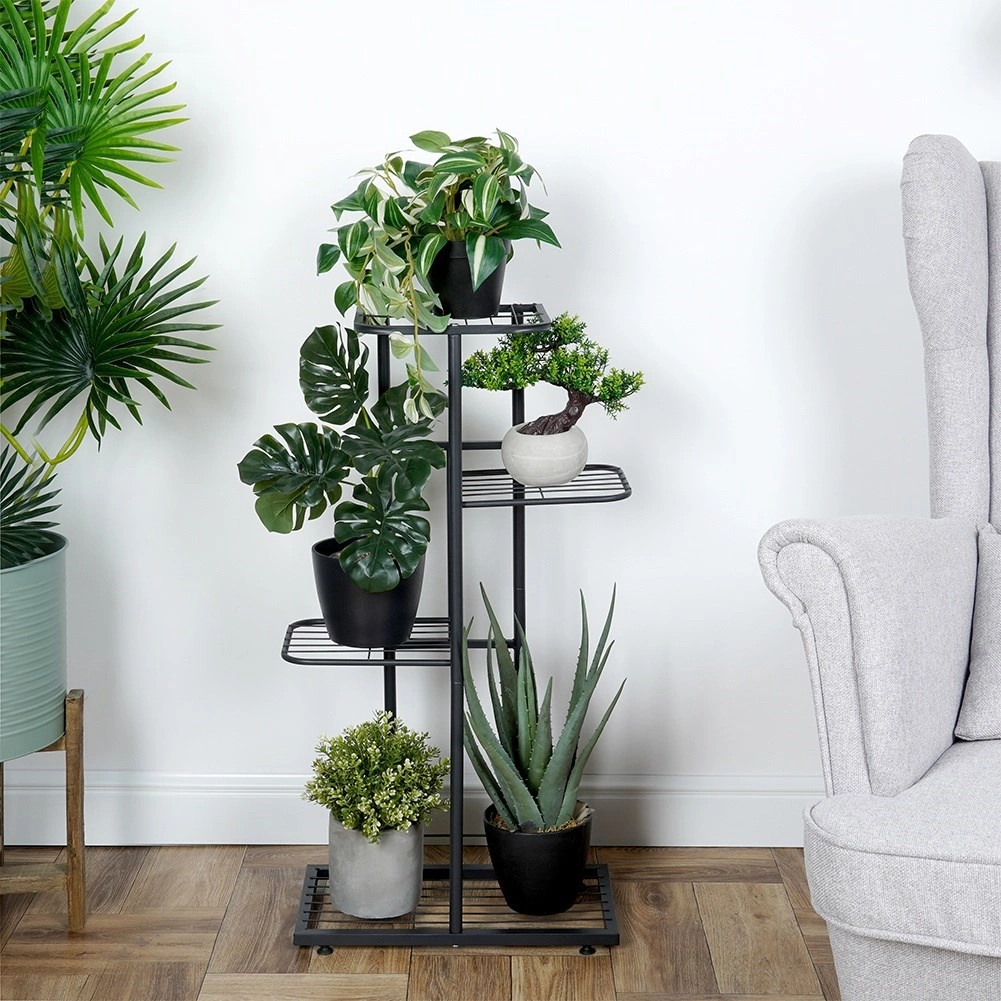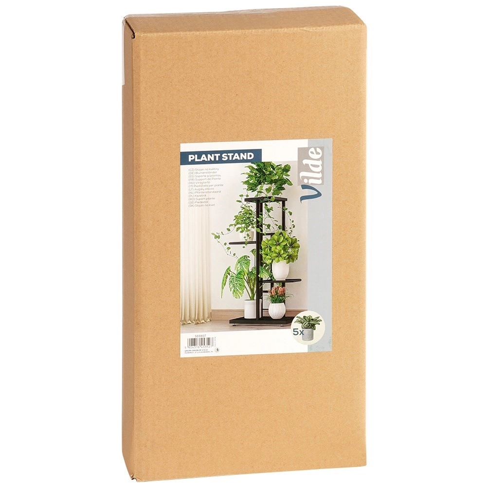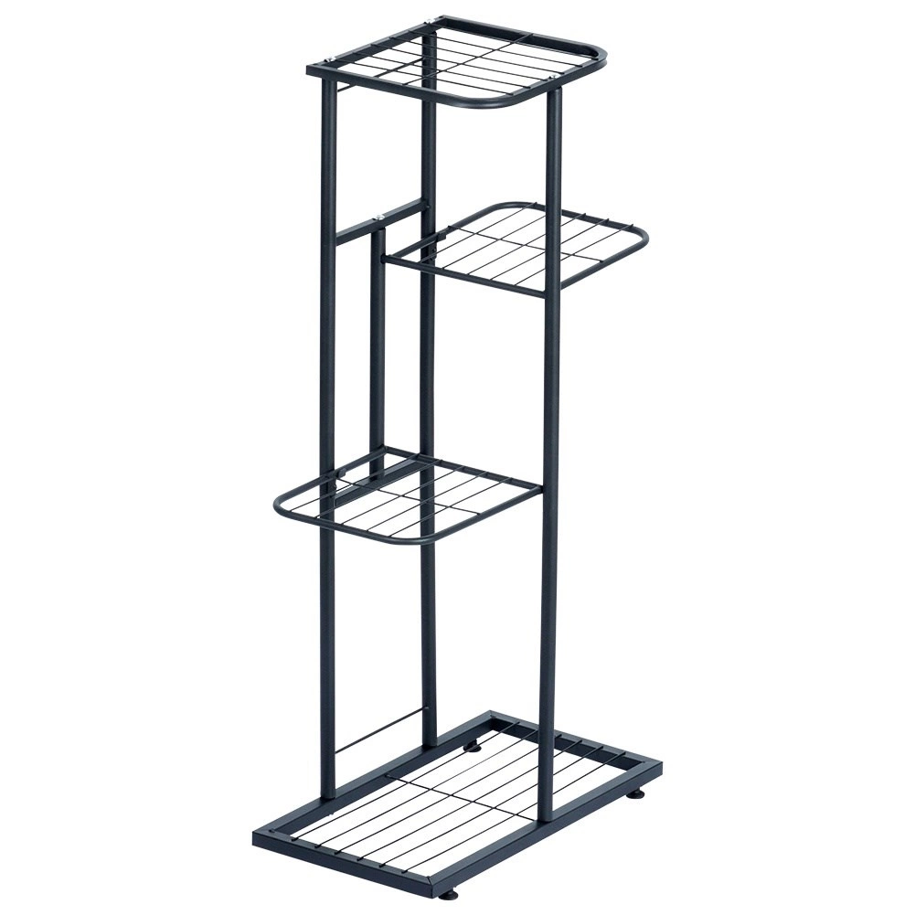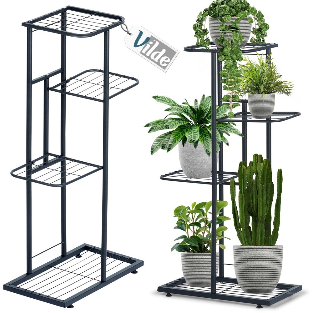 Kompaktan stalak visine 80 cm nudi promišljene dimenzije polica za različite tegle i dekoracije. Donja pravokutna polica 41 × 22 cm prima dvije srednje biljke, sljedeće police 22,5 × 19 cm idealne su za manje tegle, a gornja površina 24 × 21,5 cm istaknut će vašu dominantnu soliternu biljku ili vazu. Otvorena mrežasta konstrukcija osigurava bolji protok zraka i odvod vlage.
