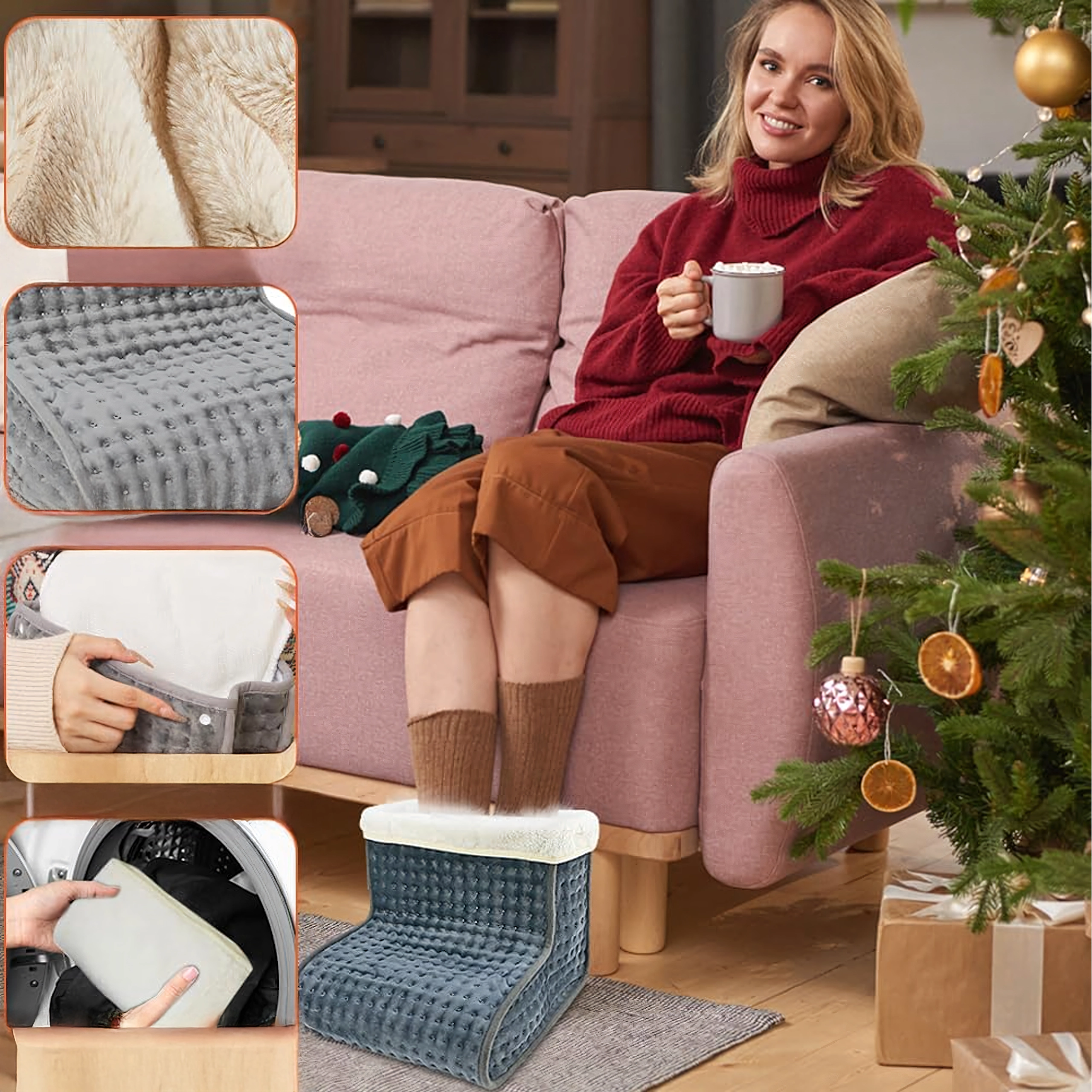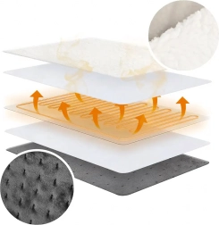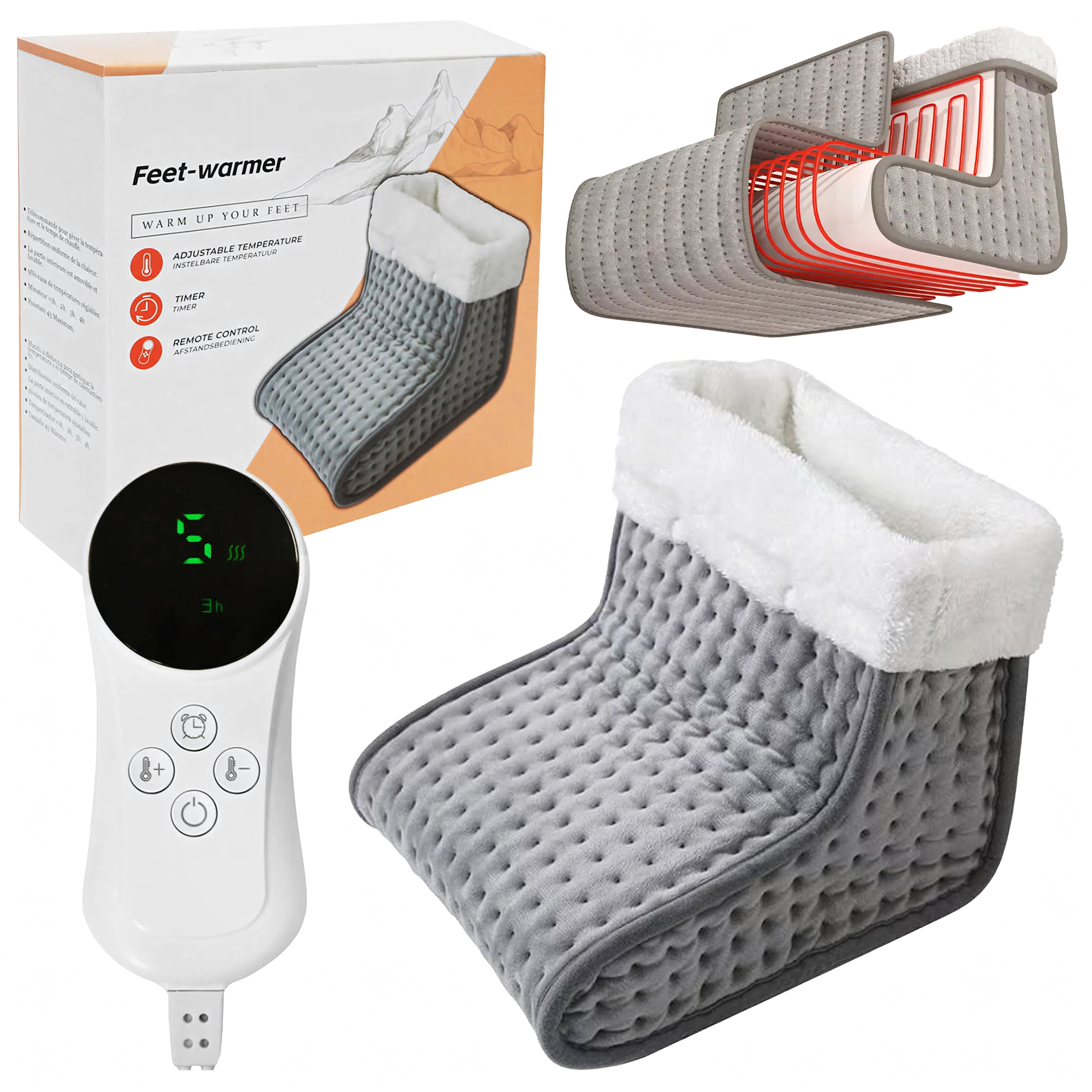 Zahvaljujući 9 stupnjeva grijanja odabrat ćete upravo onu toplinu koja vam treba – od nježnog zagrijavanja do intenzivnog grijanja nakon povratka iz hladnoće. Timer (60–240 min) s automatskim isključivanjem povećava sigurnost i štedi energiju. Konstrukcija za oba stopala, mekano podstavljanje i prozračni materijali osiguravaju udobnost i pri duljem sjedenju.