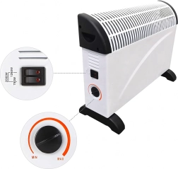 Kompaktni električni konvektor snage 2000 W nudi brzo, tiho i učinkovito grijanje za dom i ured. Zahvaljujući podesivom termostatu i tri razine snage lako prilagodite toplinu aktualnim uvjetima. Stabilna konstrukcija, nizak nivo buke i štedljiv rad čine ga idealnim izborom za hladne dane.