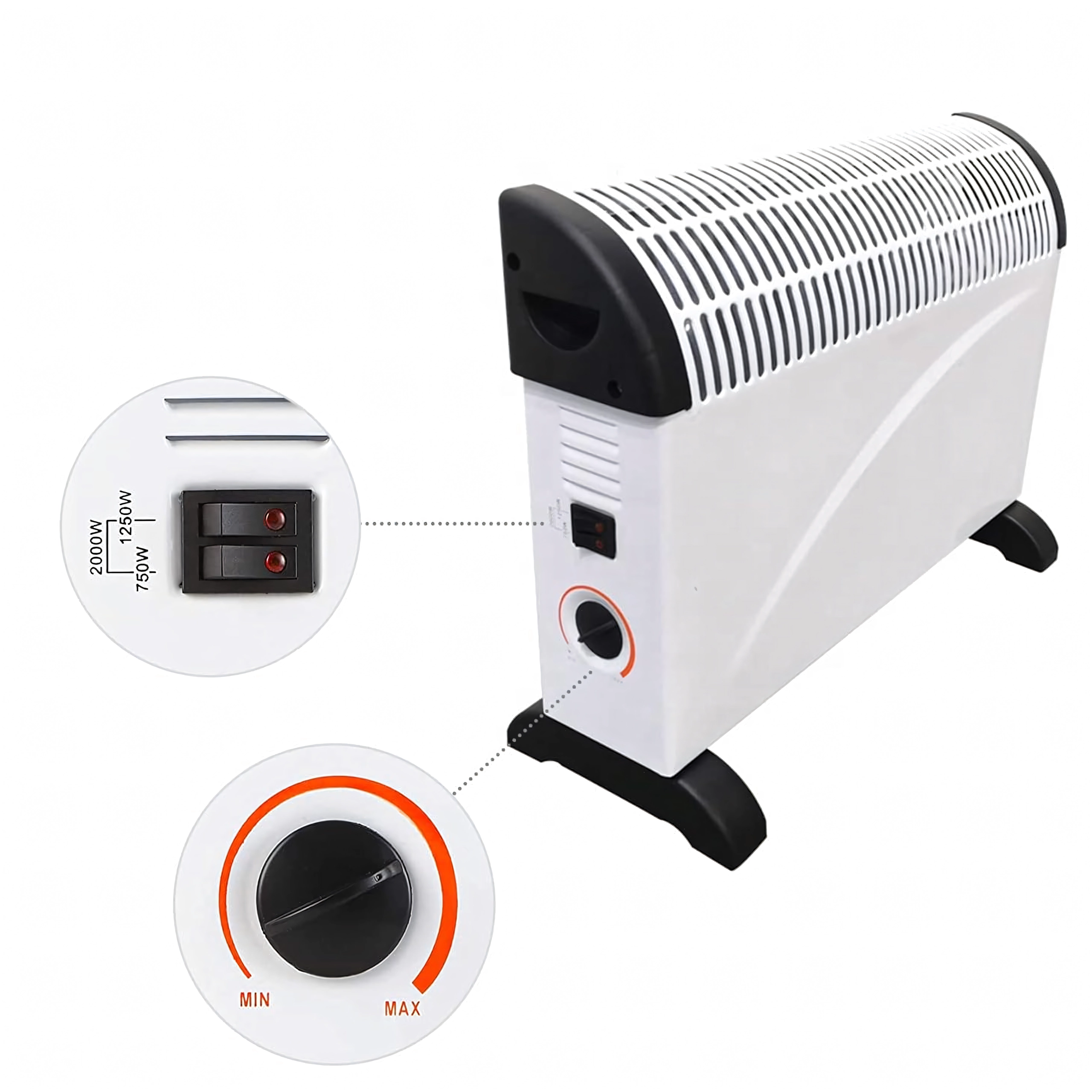 Električni konvektorski grijač 2000 W osigurava brzu cirkulaciju toplog zraka i ugodnu klimu u prostoriji u svega nekoliko minuta. Idealan je za dnevni boravak, spavaću sobu, radnu sobu, radionicu ili vikendicu.