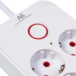 Integrirani gumb s indikacijom omogućuje jednim pritiskom isključiti ili uključiti sve priključene uređaje. Dječje zaštite štite od slučajnog dodira.