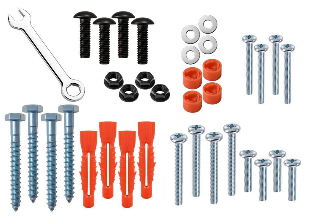 Uključeni su vijci, tiple, podloške i ključ – sve što trebate za sigurnu i urednu montažu na zid.