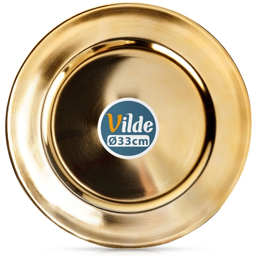 Elegantni zlatni podmetač promjera 33 cm dat će vašem stolu luksuzan izgled, zaštitit će stolnjak i stol te naglasiti serviranje. Izrađen od kvalitetnog materijala s visokim sjajem, lako se čisti i savršeno pristaje za blagdansko posluživanje, vjenčanja i obiteljske proslave.