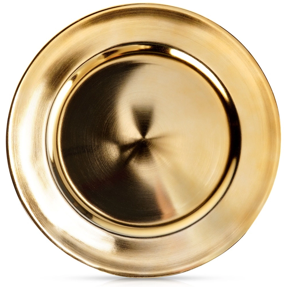 Ovaj okrugli zlatni podmetač stilska je osnova za svaku postavu stola. Široki rub i izražajan metalni sjaj trenutačno podižu izgled tanjura, čaša i pribora te istodobno štite površinu stola od topline i mrlja. Idealan za svakodnevnu uporabu i svečane prigode.