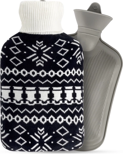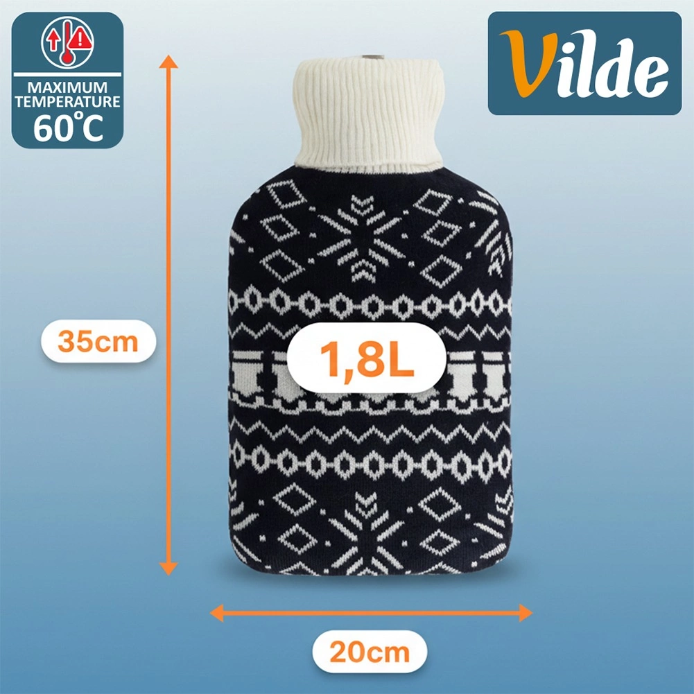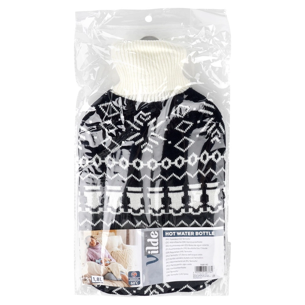Termofor Vilde zapremnine 1,8 l pouzdan je pomoćnik za svakodnevnu kućnu njegu. Pleteni navlak u kontrastnom crno-bijelom nordijskom uzorku ugodan je na dodir, povećava udobnost i štiti kožu od izravne topline. Zahvaljujući kvalitetnoj gumenoj boci i čvrstom navojnom čepu uživat ćete u sigurnoj i dugotrajnoj toplini.