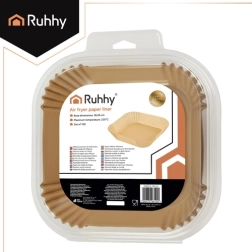 Održavajte svoju fritezu na vrući zrak savršeno čistom s papirnatim ulošcima RUHHY. Set sadrži 100 jednokratnih uložaka od silikoniziranog papira za neprianjajuće pečenje, s otpornosti do 230 °C i univerzalnim kvadratnim oblikom 20 × 20 × 4,5 cm (donja baza 16 × 16 cm). Manje čišćenja, više okusa – idealno za pomfrit, meso i peciva.