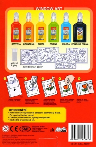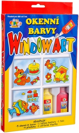 Set ljuštivih prozorskih boja idealan je za djecu koja vole stvarati. Odaberite predložak, precrtajte ga crnom konturom, obojite omiljenim nijansama i ukrasite šljokicama. Nakon sušenja (oko 6 sati) motiv se može oljuštiti i zalijepiti na prozor, staklo ili plastiku.