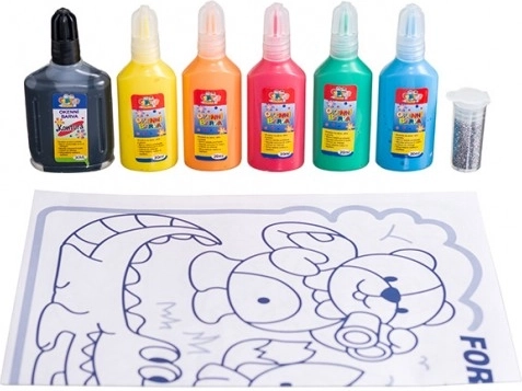 Boje su intenzivne (crvena, narančasta, žuta, zelena, plava i crna), lako se nanose te potiču finu motoriku, kreativnost i maštu. Možete stvarati uz predloške ili potpuno bez predloška.