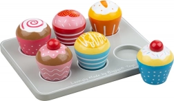 Priredite djeci radost kreativne igre s drvenim muffinima BIGJIGS TOYS. Set sadrži šest slasno izgledajućih komada uključujući poslužavnik, pa su uvijek spremni za posluživanje. Svaki muffin ima jedinstven dekor koji potiče kombiniranje i igre uloga u dječjoj kuhinjici ili dućanu.
