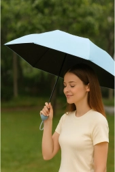 Tražite kišobran koji je malen u torbi, a velik po učinku? Ovaj kompaktni sklopivi kišobran u elegantnoj pastelnoplavoj boji nudi pouzdanu zaštitu od kiše i sunca. Unutarnji tamni sloj pomaže smanjiti odsjaj te zajedno s certificiranom UV zaštitom UPF 50+ štiti kožu tijekom sunčanih dana.
