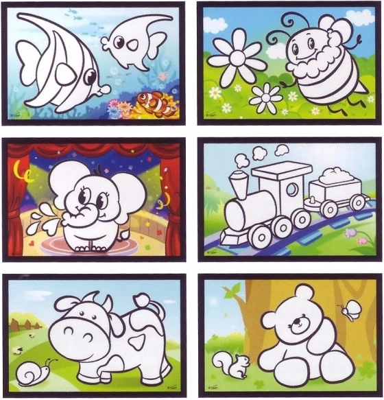 Postupak: Otvorite kist, napunite ga vodom i zatvorite. Prelazite preko bijelih dijelova sličice dok se lijepo ne oboji. Nakon nekoliko minuta sličica se osuši i spremna je za novo stvaranje.