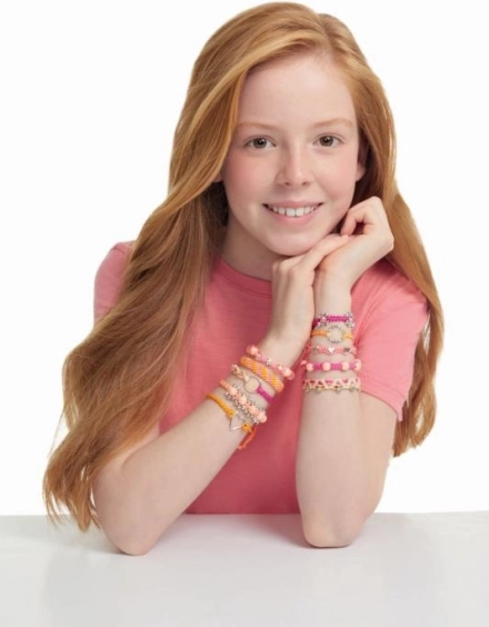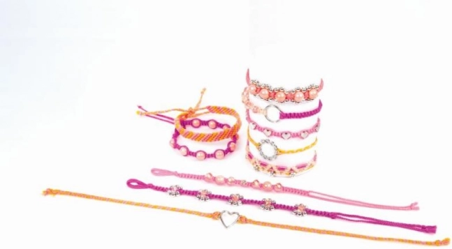 Set uključuje široku paletu niti i perli u živahnim i trendy bojama koje omogućavaju stvaranje jedinstvenih dizajna.
