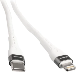 Tekstilni čvrsti oplet štiti bakrene vodiče od lomova i trošenja, dok aluminijski konektori s ojačanjem dobro podnose naprezanje i ne pregrijavaju se, čime štede portove vaših uređaja. Kompatibilan s većinom uređaja s Lightning priključkom.
