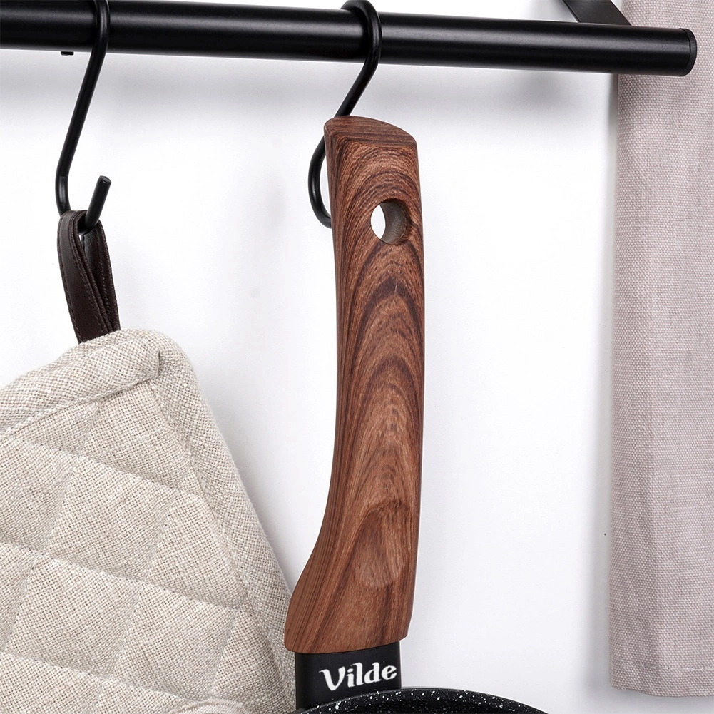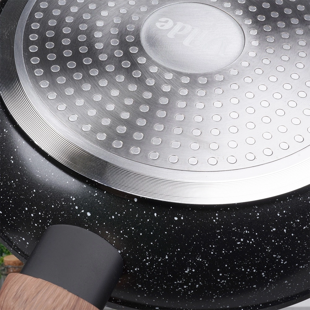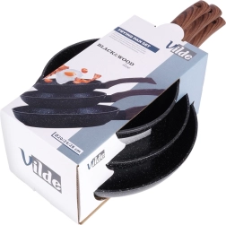 Set tava BLACK&WOOD spaja moderan izgled s praktičnošću za svaku kuhinju. Tri univerzalne veličine (20/24/28 cm) pokrivaju brze doručke, ručkove i obiteljske večere. Izdržljiv granitni neljepljivi sloj osigurava lako odvajanje jela, manje zagaranja i jednostavnije održavanje.