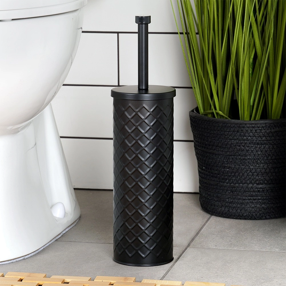 Mat crna izvedba s elegantnim dijamantnim reljefom daje kupaonici moderan izgled. Metalna konstrukcija je čvrsta i stabilna, drška ugodno leži u ruci. Zamjenjiva navojna glava za čišćenje produljuje vijek trajanja cijelog seta.
