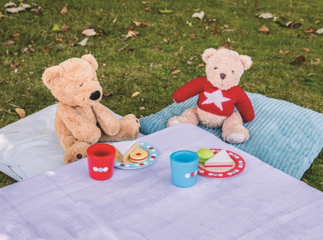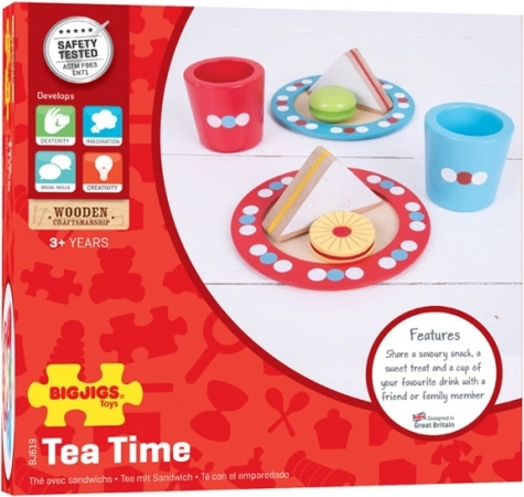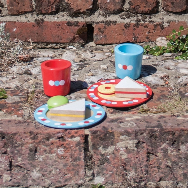 Ovaj šarmantni drveni čajni set s točkicama poziva na zajednički „čaj u pet“. Djeca će isprobati posluživanje, uljudnost i dijeljenje, a pritom uvježbati hvat i koordinaciju ruku. Šareni detalji i promišljene dimenzije čine ga omiljenim dodatkom svakoj dječjoj kuhinjici.