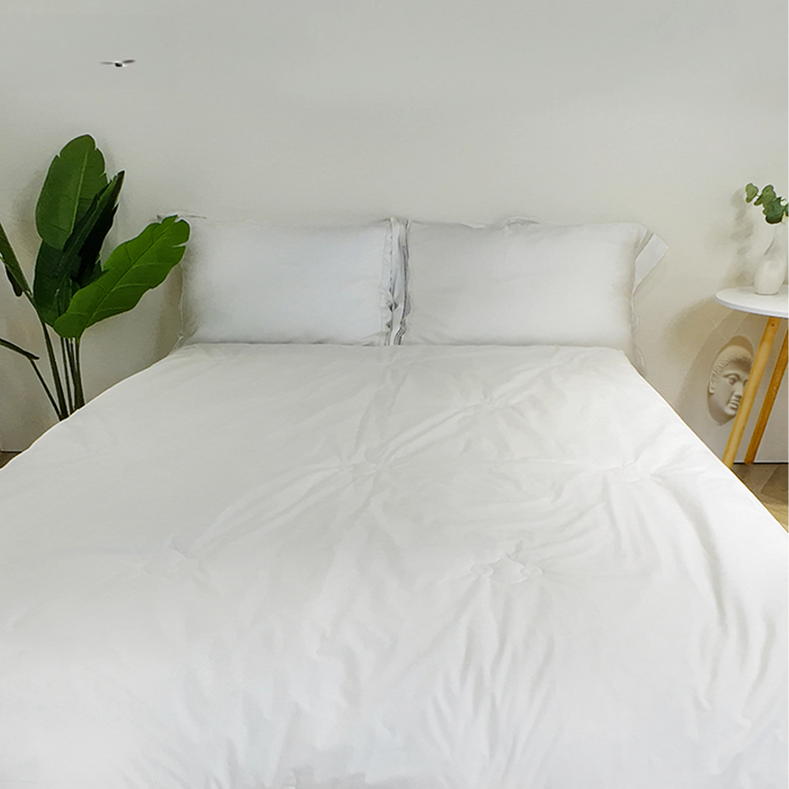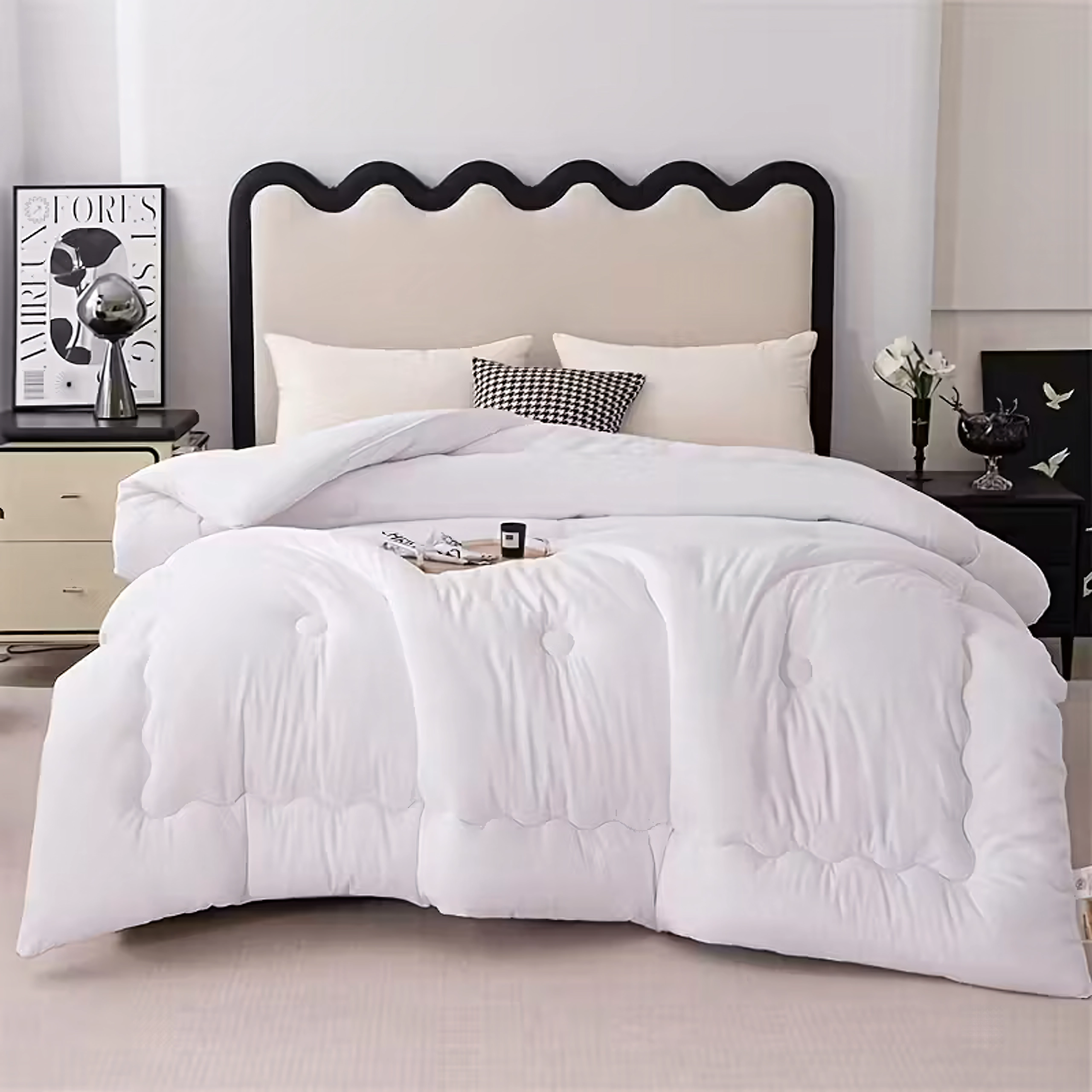 Ovaj bijeli cjelogodišnji poplun kombinira lakoću, toplinu i prozračnost, pa ćete se pod njim osjećati ugodno bez nepotrebnog znojenja. Velikodušna dimenzija 200 × 220 cm savršena je za bračni krevet i pruža dovoljno udobnosti za dvoje.